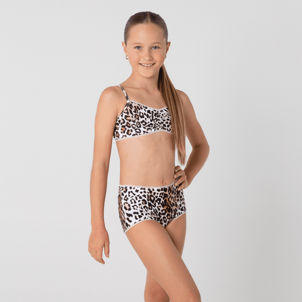 Introducing The Savannah Set, your new summer essential from our Active Swim range—designed to turn heads both in and out of the water. Whether you’re diving into the pool or dancing in the studio, this versatile set moves with you and stands out effortlessly. Crafted in our stunning Feather Leopard print, The Savannah Set is bold, bright, and built to shine. The top features delicate centre ruching for added detail, paired perfectly with the cutest booty shorts. A touch of lace along the waistband and top adds a soft, feminine finish that makes this set truly irresistible. Stylish, functional, and unforgettable—this is the set you’ll reach for all summer long.