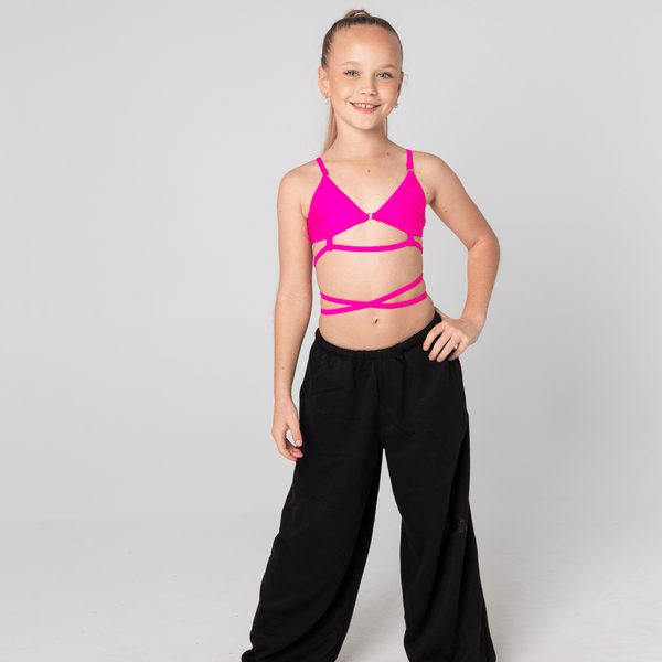 In collaboration with the one and only 'Paris Cav' we have created a stunning Bralette for you! With a binding tie wrap and bikini style, this is the perfect crop for your performances and general dancewear. You'll be sure to stand out from the crowd wearing the Paris Cav Bralette!