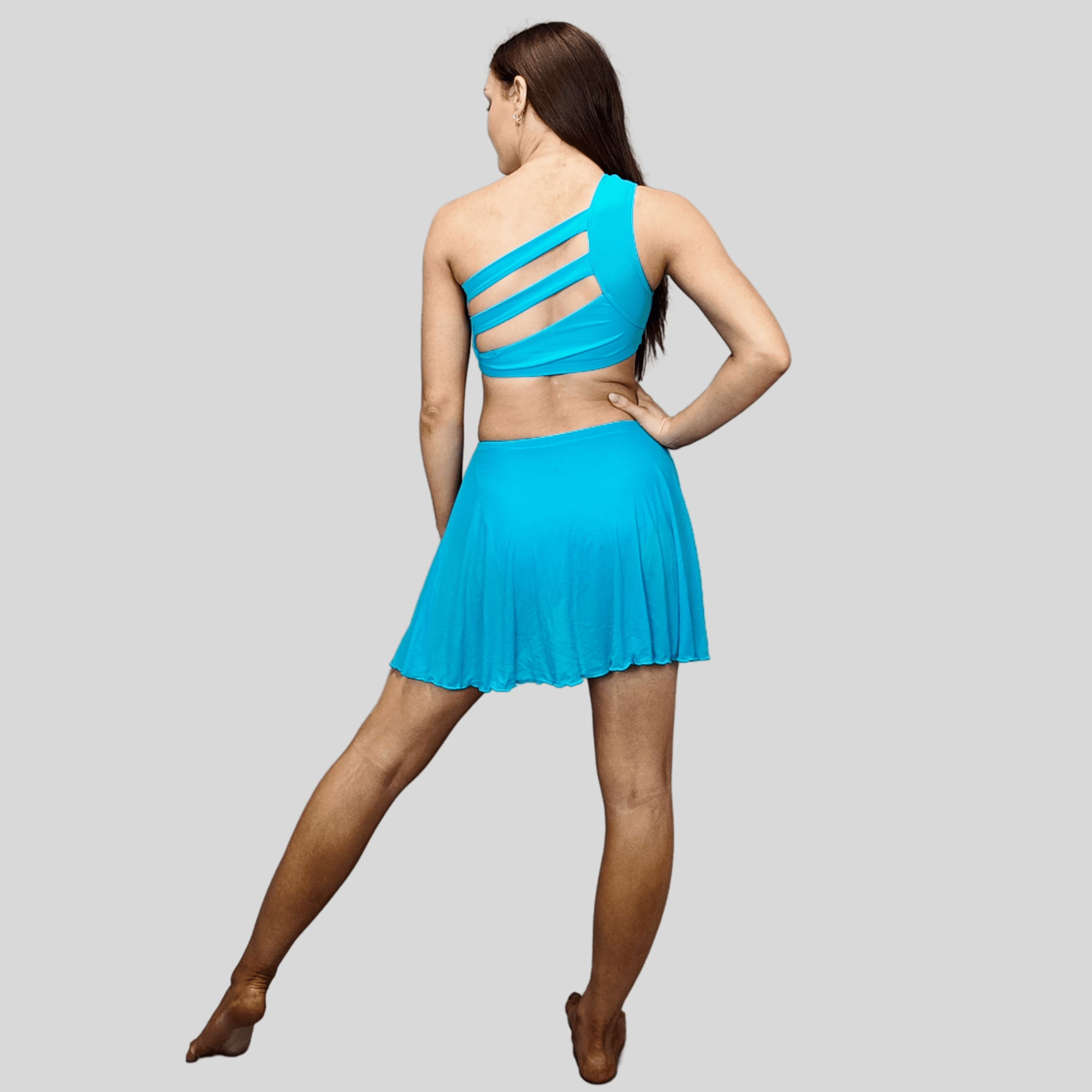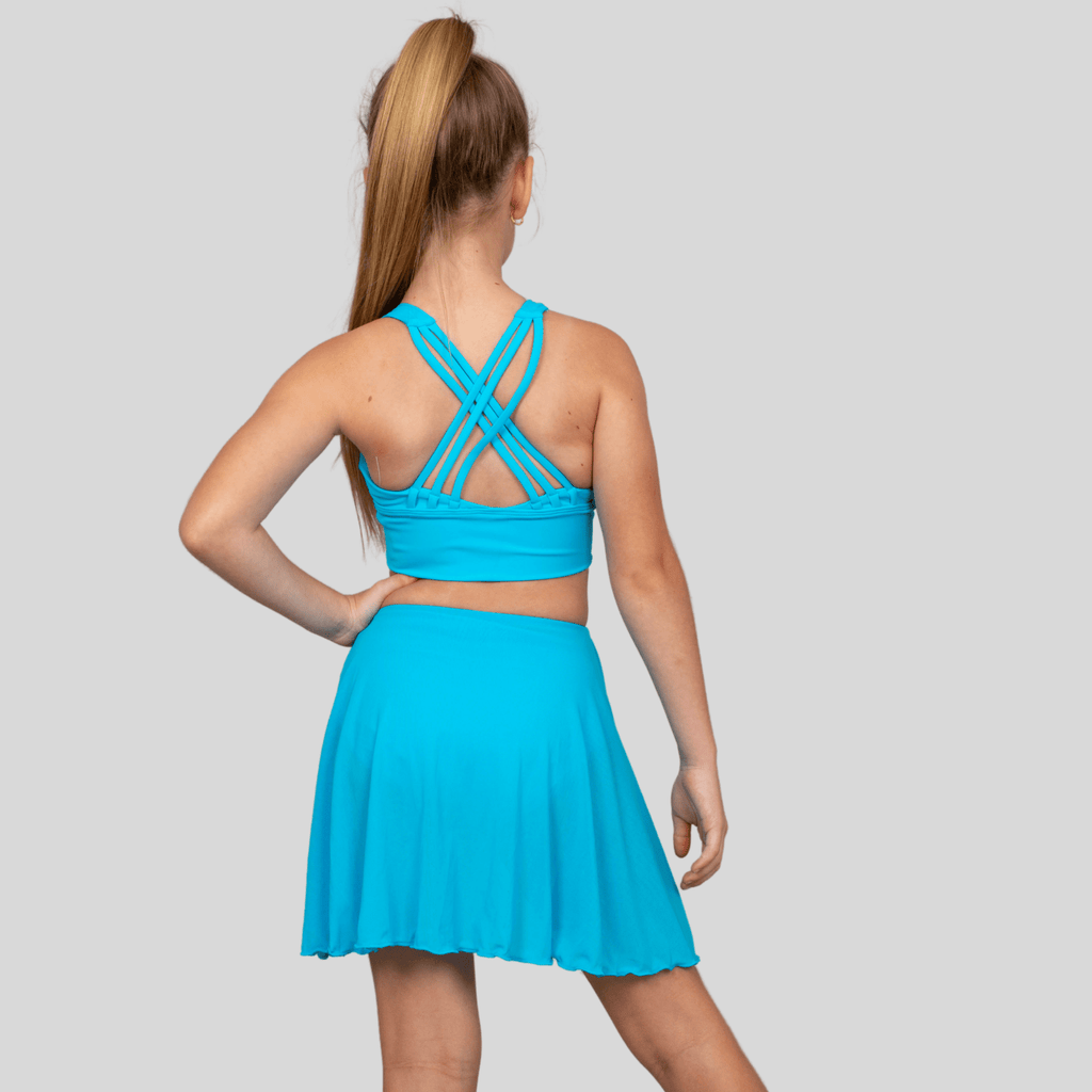 Experience effortless grace on stage with our Aspire Dance Skirt. The rouched mesh draping at the front adds sophistication to your performance, while the longer back skirt offers a dramatic flair. With an in-built high waisted undie, this skirt ensures comfort and coverage while you dance. Available in two colours - Azure Blue and White, it's perfect for lyrical dances. Be stage and performance ready with our premium dance skirt.