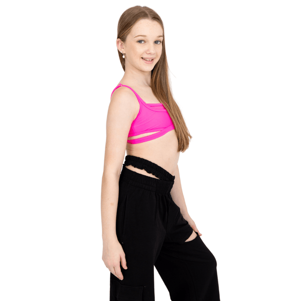 The new Cassie B Collab crop is so divine. The crop was designed by Cassie and has a street edge flair. Stylish and unique, with slick cutout design, mesh detail on front and feature clips at back.......this crop looks great on everyone. Designed to team perfectly with the Cassie B - Collab2.0 - Warm Up Trackies